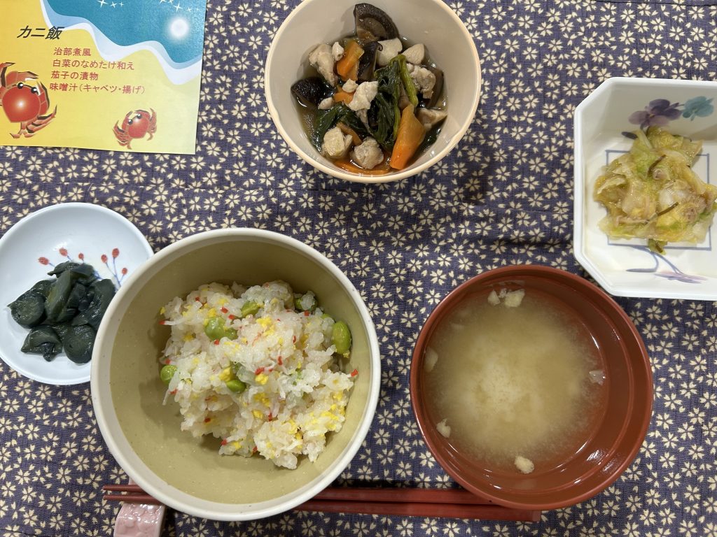 色鮮やかなカニ飯はとても喜ばれました。